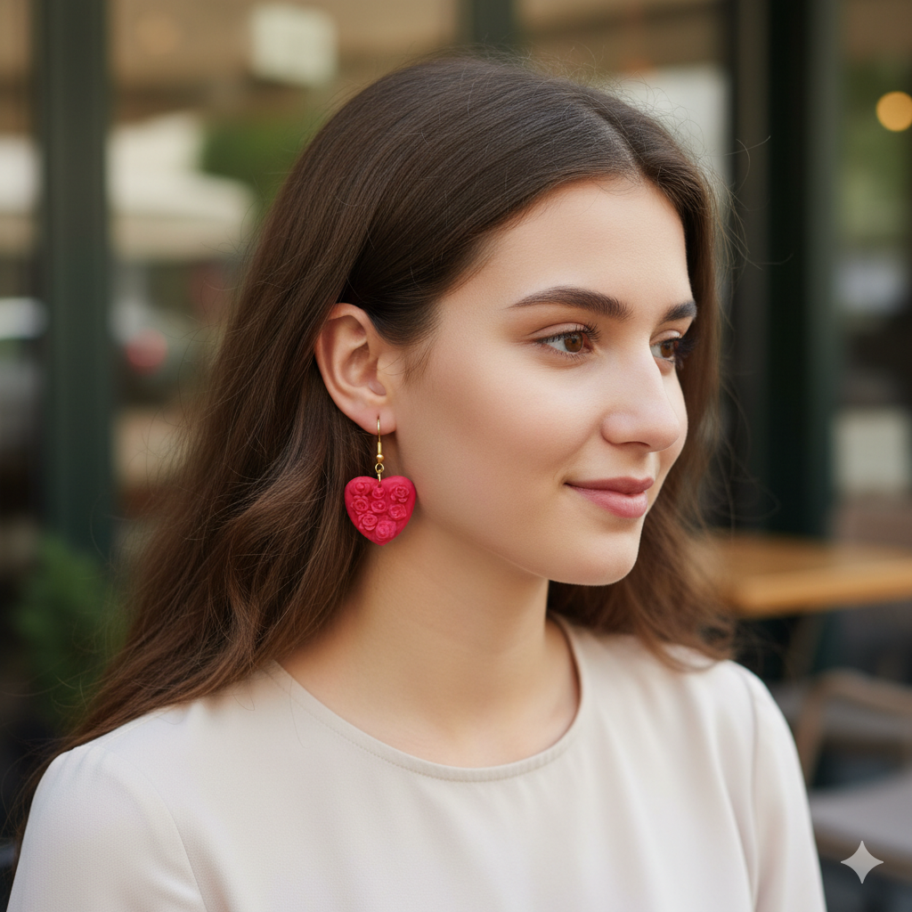 PENDIENTES CORAZON Y ROSAS